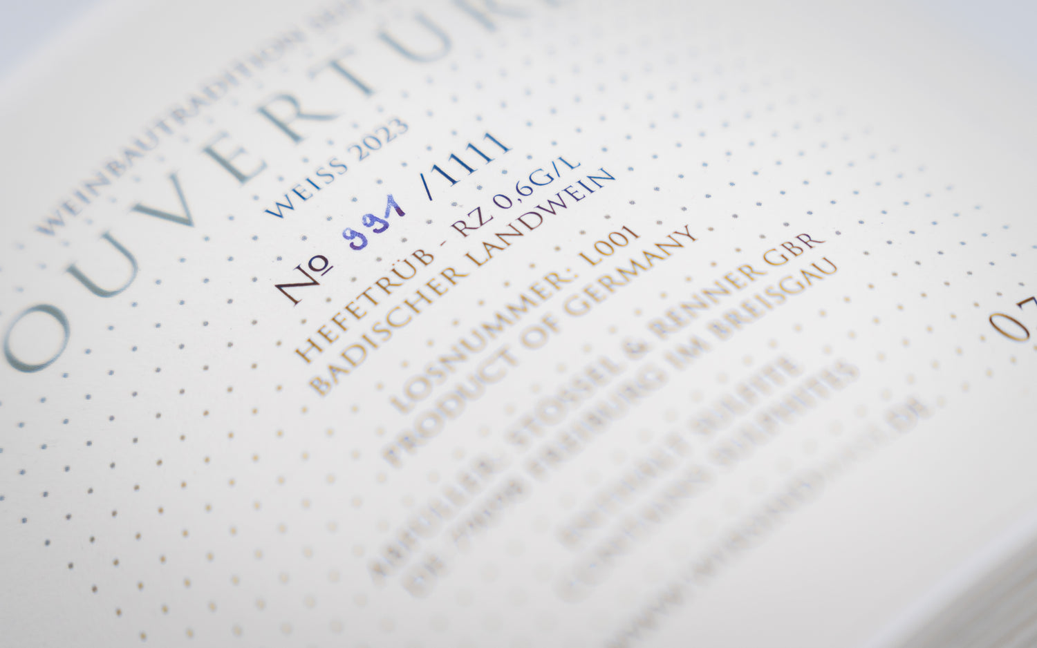 Jede Flasche ist handschriftlich mit königsblauer Tinte nummeriert.